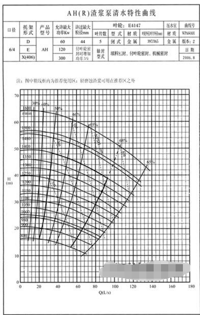 特性曲線包括:流量-揚(yáng)程曲線(Q-H),流量-效率曲線(Q-η),流量-功率曲線(Q-N),流量-汽蝕余量曲線(Q-(NPSH)r),性能曲線作用是泵的任意的流量點(diǎn)與揚(yáng)程的交叉點(diǎn),稱為渣漿泵在工作中的實(shí)際工況點(diǎn),都可以在蜀南泵業(yè)曲線上找出。